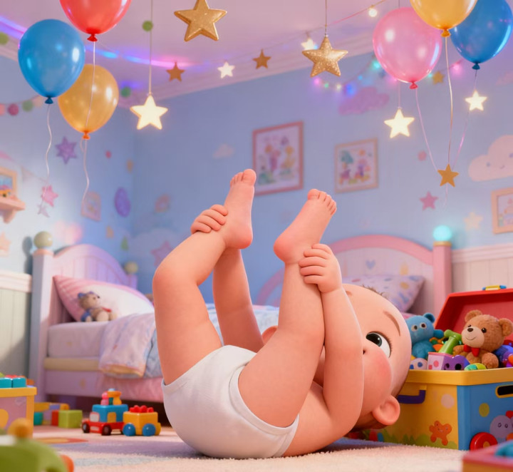 有时候宝宝会左右两侧轮流侧卧,就像在“翻滚”一样